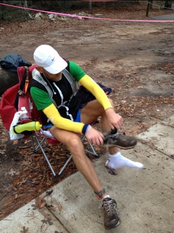 Quick post from the trenches; Michael got fresh socks and the best grilled cheese he will ever have in his life at the last aid station at 63.1 miles. He looked great and feels better than at 60 miles. He wanted to thank everyone for their support through blog comments, personal emails and audio clips and says they have been immensely helpful to him!!